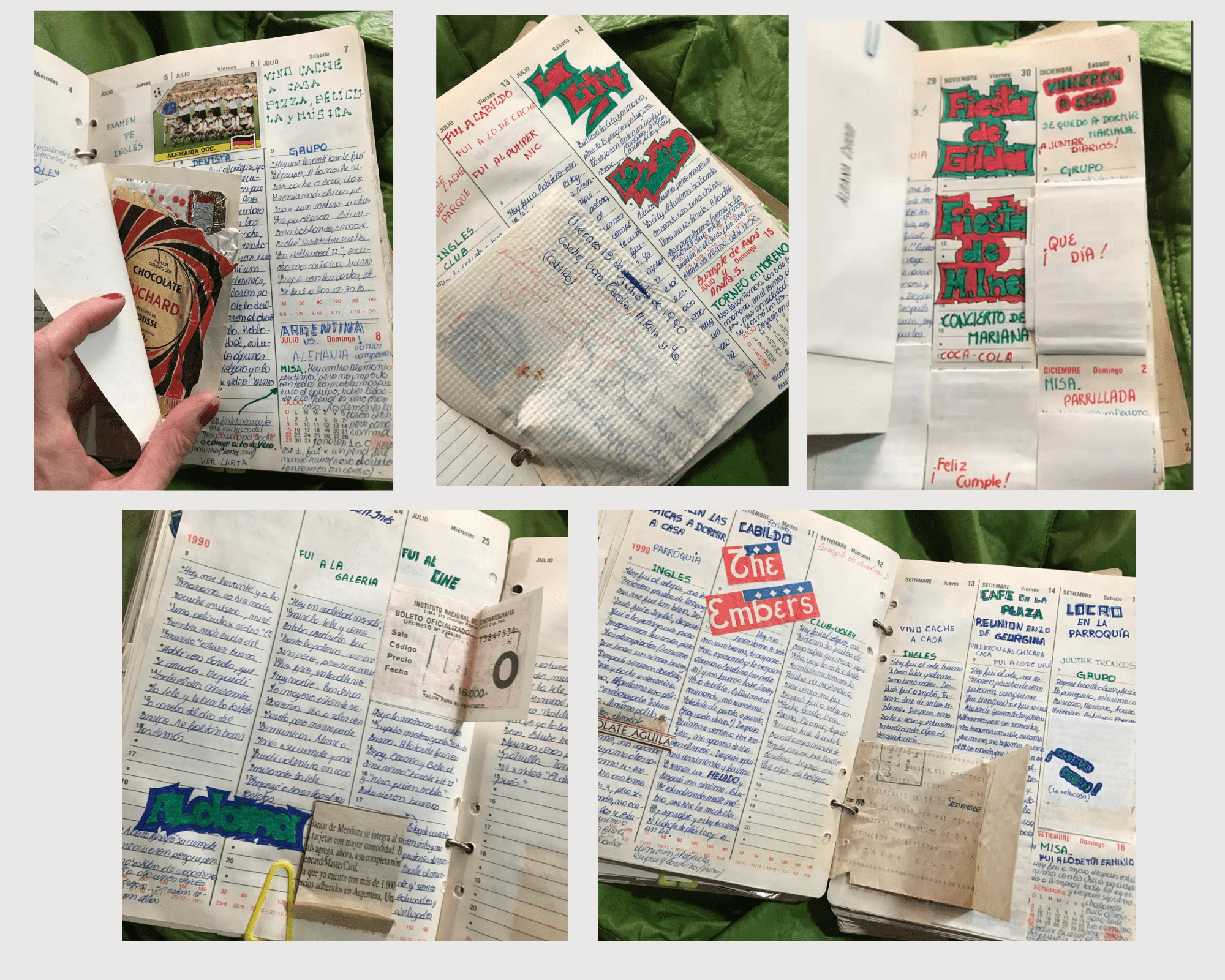 👉Yo era la que durante mi secundario escribía el día a día de mi adolescencia en una agenda Citanova (y como no me alcanzaba el espacio, le pegaba tiras de papel laguísimas, que doblaba hasta que todo entraba en la página), reproducía diálogos de mis amigos, dibujaba el logo de la discoteca a la que íbamos, pegaba las servilletas del restaurante o el envoltorio del chocolate que me regalaban.